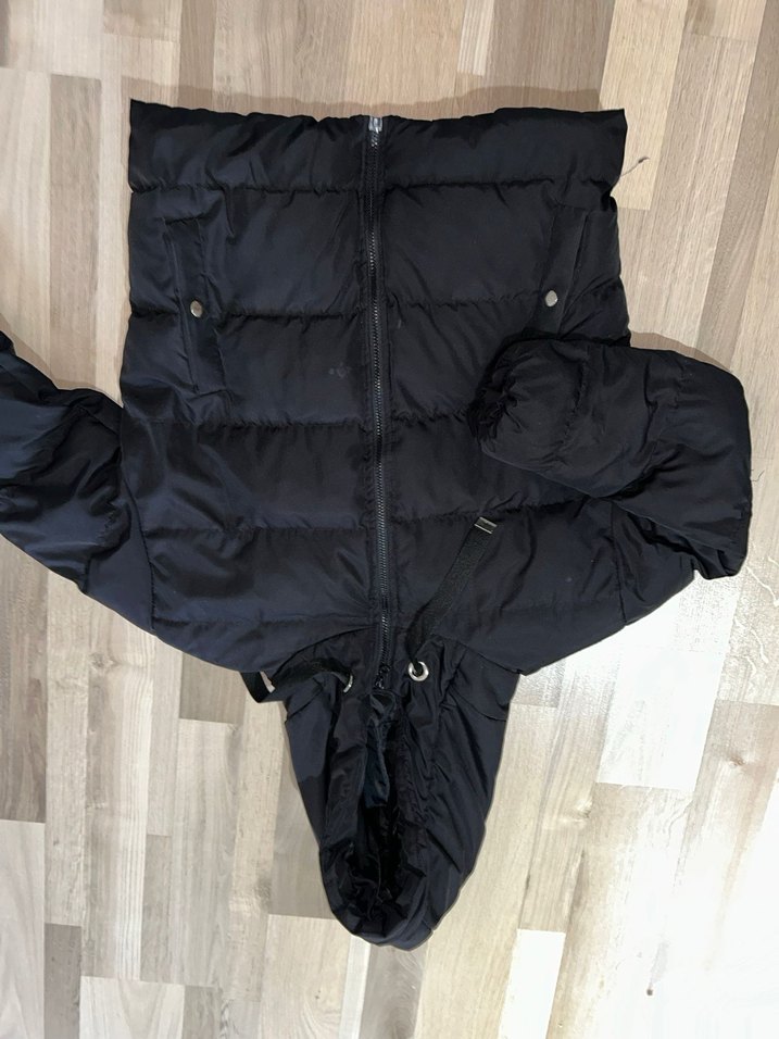 Fermuarlı önü ve kesimli yaka tipiyle siyah, kalıplı kışlık ceket. Yumuşak, sıcak kumaştan, askılı kollu ve midi boydadır. Sokak stiline uygun, rahat bir model.