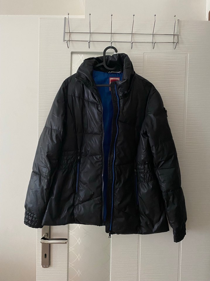 Siyah renkli, fermuarlı ve dar kesim kadın kışlık ceket. Notched lapel yakalı, askılı kollu, yumuşak ve sıcak kumaştan, sokak stili ve açık hava kullanımı için uygundur.