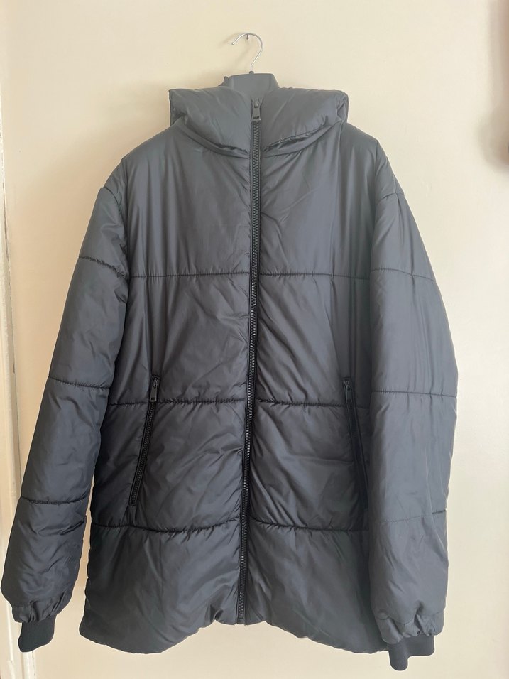 Kadınlar için siyah fermuarlı kışlık ceket. Notlu yaka, uzun kollu ve düz modeldir. Orta boyda, yumuşak ve sıcak kumaştan yapılmıştır.