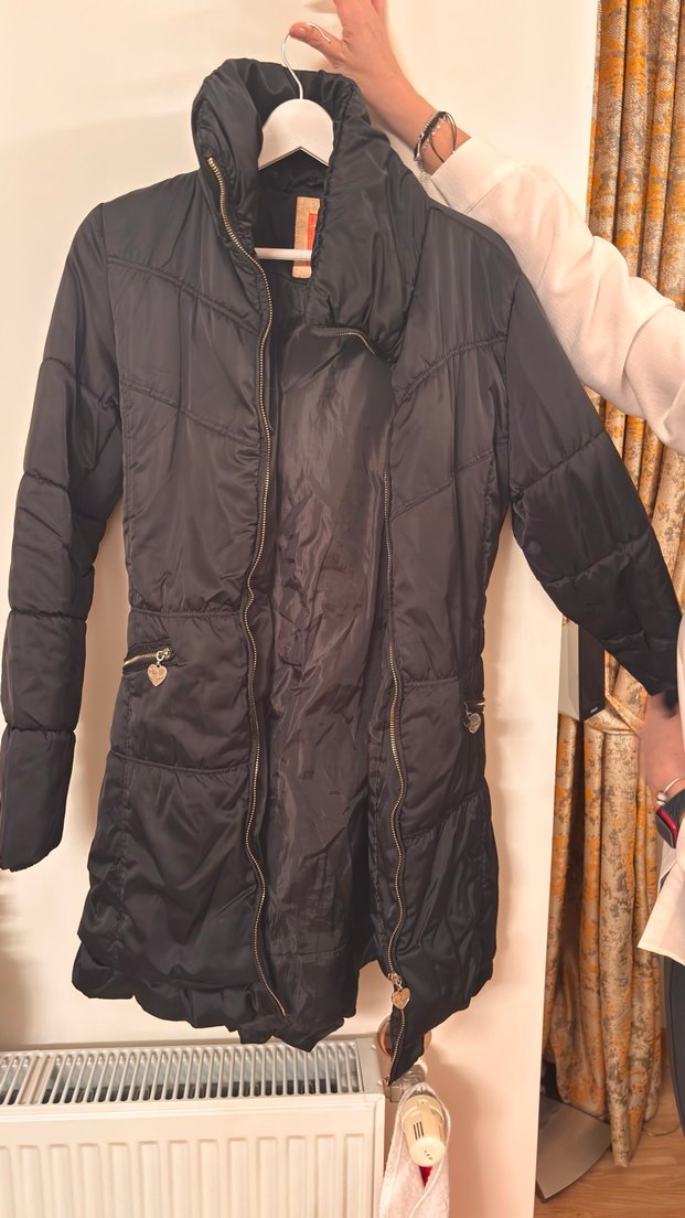 Siya cepleri ve kesimli tasarımıyla siyah kışlık mont, uzun kollu ve yaka detaylıdır. Yumuşak iç yüzeyiyle günlük kullanıma uygundur.