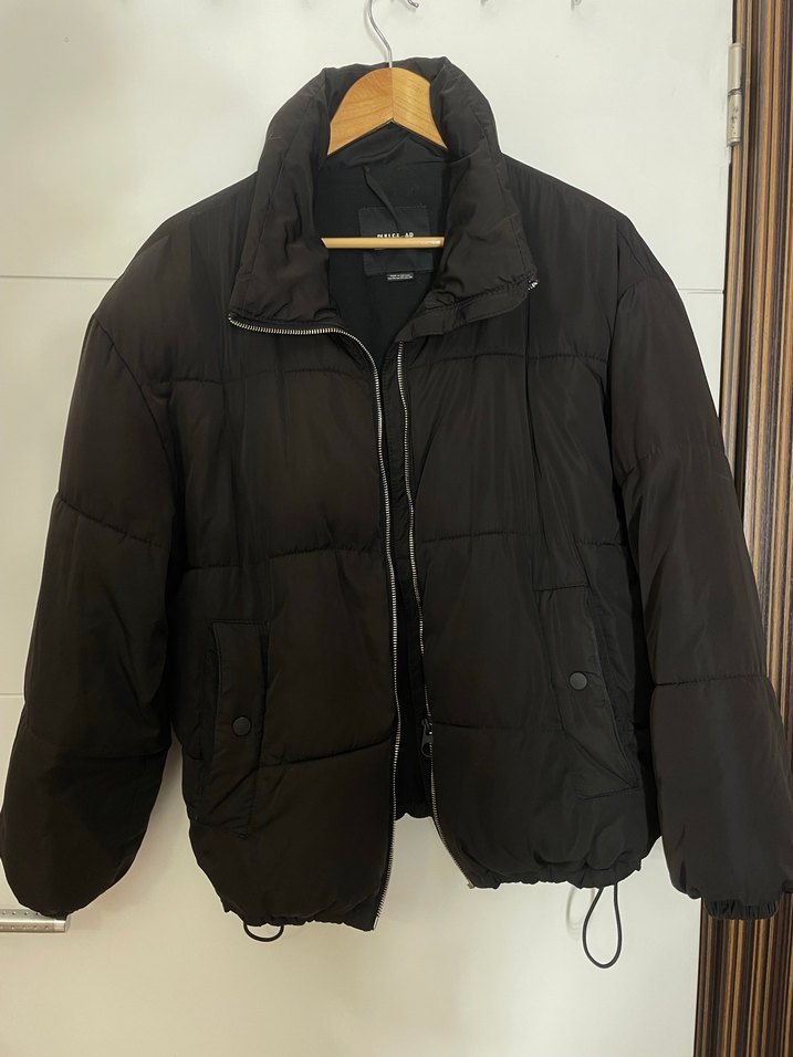Siyah, fermuarlı, yüksek yakalı ve uzun kollu, yumuşak ve sıcak kumaştan yapılmış kadın kışlık mont. Günlük rahat kullanıma uygundur. ❄️
