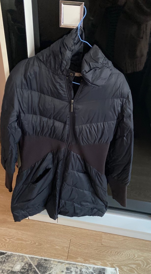 Fermuarlı, yüksek yakalı ve uzun kollu siyah kadın kışlık mont. Midi boyda, yumuşak ve sıcak kumaştan, dış mekan sokak stili için ideal.
