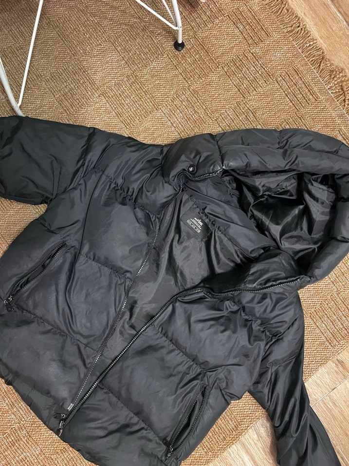 Fermuarlı, siyah kadın kışlık mont, uzun kollu ve kesimli. Sentetik kumaştan, sokak modasına uygun, dış mekan kullanımı için ideal. ❄️