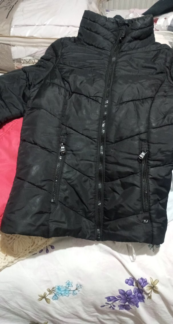 Siyah, fermuarlı, sentetik kumaştan yapılmış, normal boy ve dar kesim kadın kışlık mont. Notlu yaka ve cep fermuarları ile rahat ve şık.