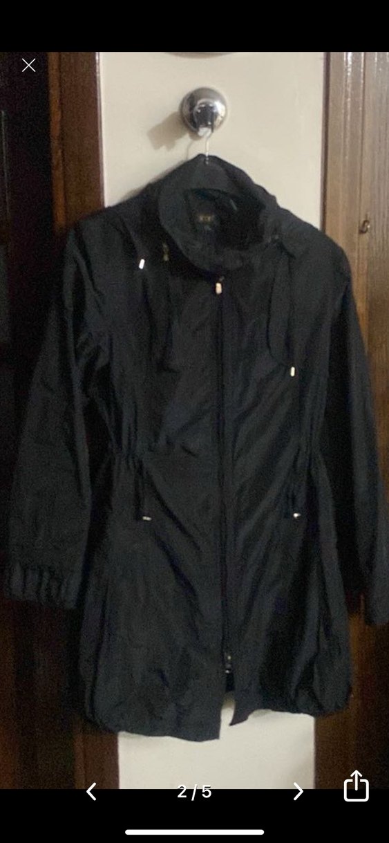 Yüksek yakalı, uzun kollu siyah kadın ceket, fermuarlı ve midi boyda. Sentetik kumaştan, sokak stiline uygun ve dış mekan kullanımı için ideal. Sağ etek ucunda minik bir sigara yanığı mevcut koltuk altı 48 cm boy 86 cm kol boyu 63 cm