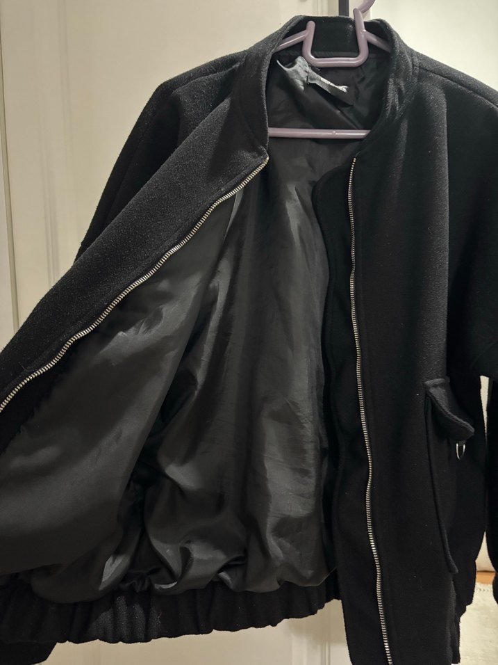 Siyah fermuarlı, uzun kollu ve notched yaka detaylı, bol kesim minimalist tarzda midi uzunlukta kadın ceket. Yumuşak iç astarıyla günlük kullanıma uygundur.