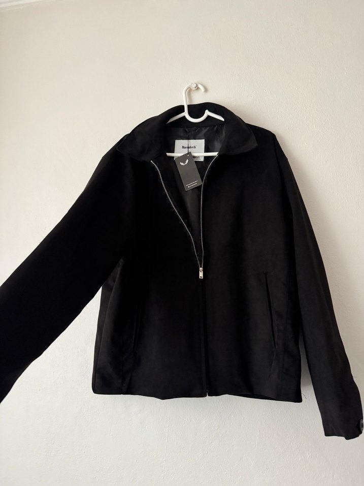 Siyah fermuarlı midi ceket, notalı yaka ve uzun kolludur. Rahat kalıplı, yumuşak ve sıcak kumaştan üretilmiştir. Minimalist sokak stili için uygundur. HİÇ GİYİLMEDİ. ETİKETLİ.