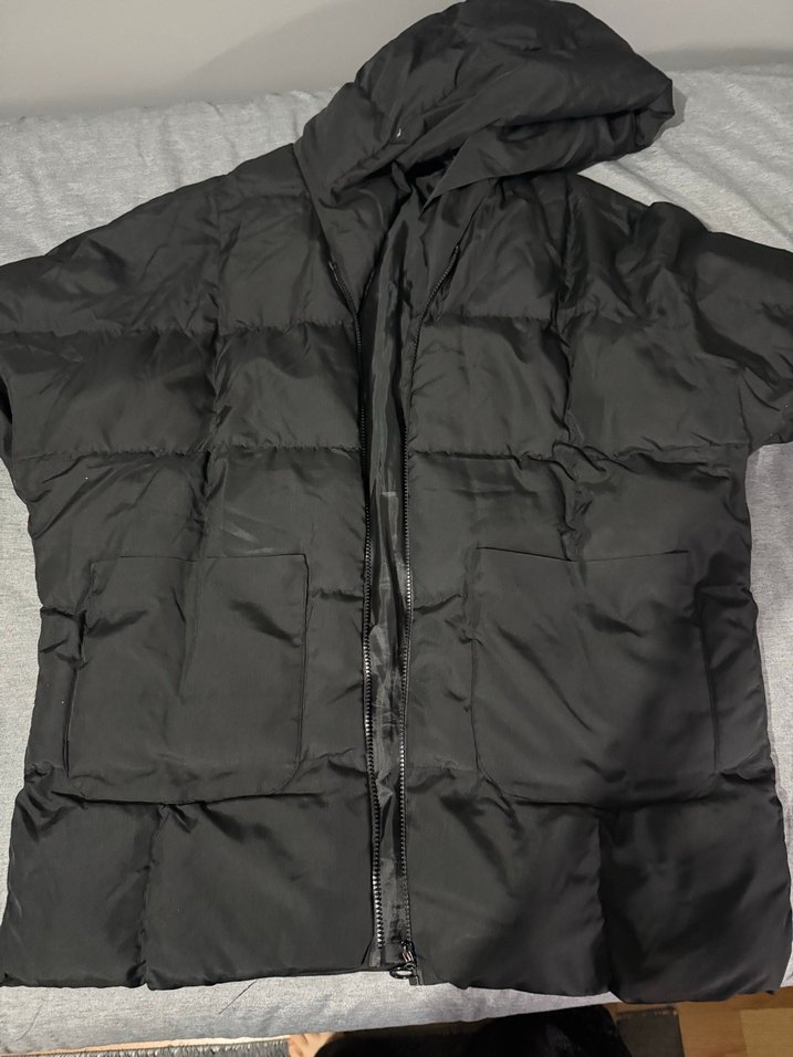Siyah renkte, fermuarlı, uzun kollu ve midi boyda, sokak tarzı kadın kış kabanı. Yumuşak ve sıcak kumaştan outdoor kullanımına uygundur.