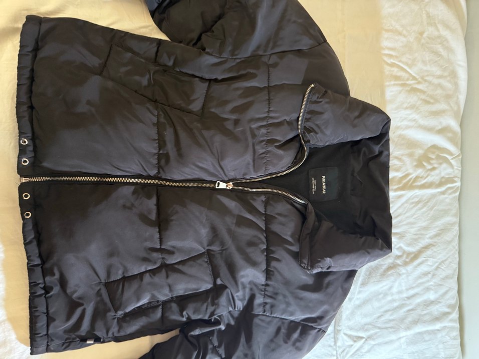 Siyah, fermuarlı, yakalı ve midi boyda, sokak tarzı kadın kış ceketi. Yumuşak ve sıcak kumaştan, dar kesim ve askılı kollu, günlük kullanıma uygun.
