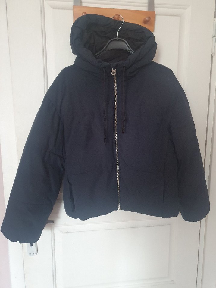 Yumuşak ve sıcak kumaştan yapılmış, siyah fermuarlı kadın mont. Yüksek yakalı, kapüşonlu ve uzun kolludur, günlük kullanıma uygundur.