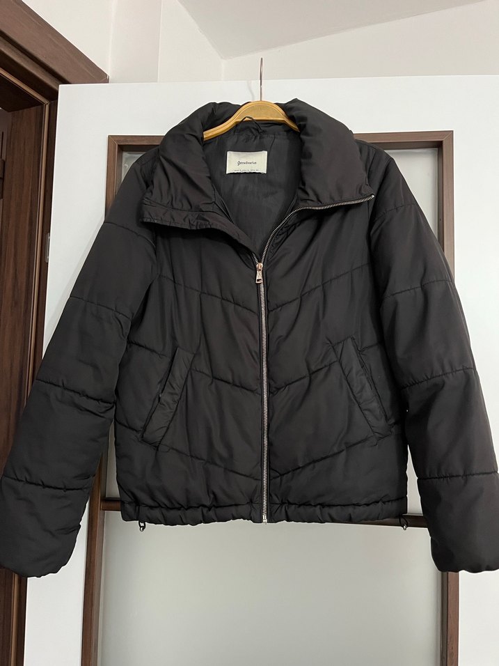 Siyah,fermuarlı mont, kullanıma bağlı fermuarın tutma kısmında renk soyulması var onun dışında hiç bir sorunu yoktur.