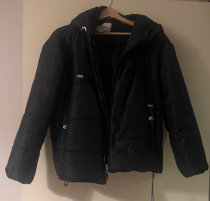 Fermuarlı, siyah ve ince kesimli kadın mont