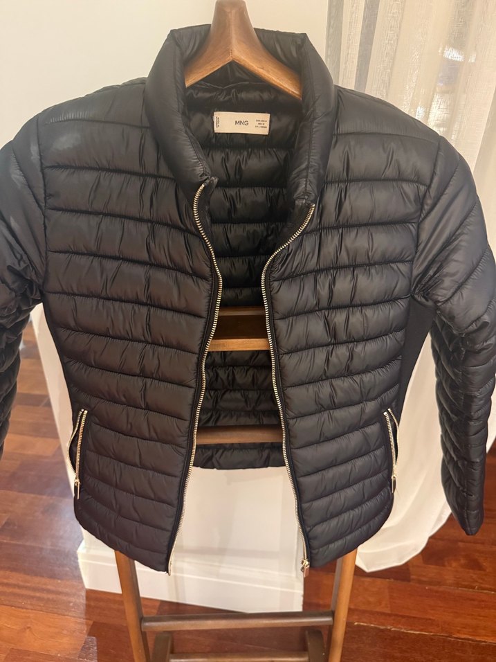Siyah renk, ince kesim kadın mont yüksek yakalı ve fermuarlı ceplidir. Sentetik kumaştan yapılmış, uzun kollu ve midi boy olup günlük kullanıma uygundur. 36-38 beden arasina uygun