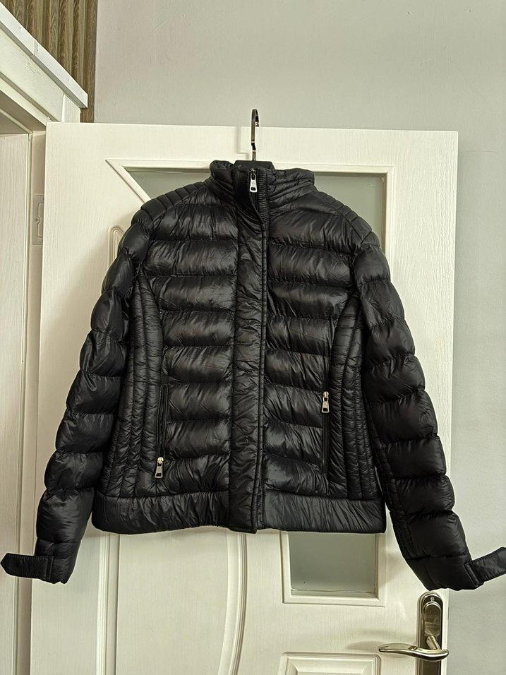 Siyah, fermuarlı, uzun kollu ve yüksek yakalı bu dar kesim kadın montu, sentetik kumaştan üretilmiştir. Biker tarzı ve dış mekan kullanımı için uygundur. M-2 tane mevcut