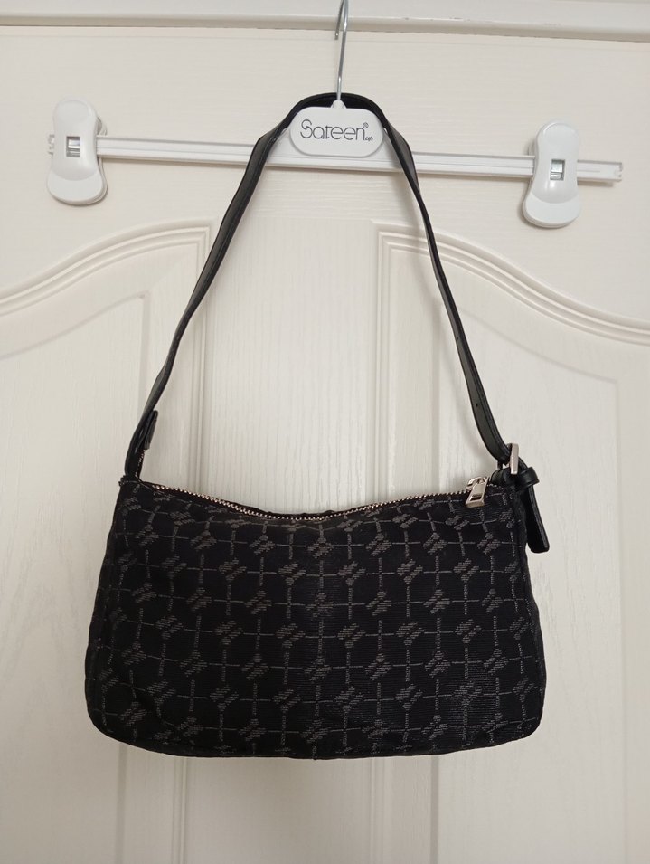 Siyah renkte, fermuarlı üst kısmı olan, sentetik kumaştan yapılmış ve şık desenli kadın omuz çantasıdır. Trendy casual goth tarzına uygundur.