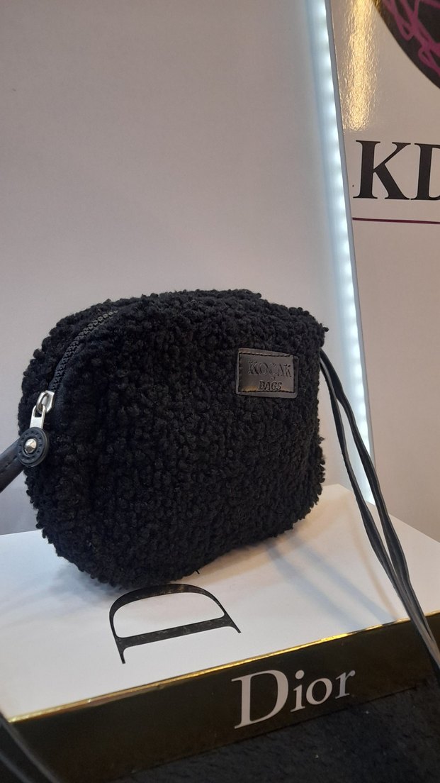 Siyah Fermuarlı Kadın Peluş Çanta