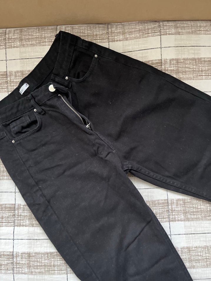 Siyah, fermuarlı, regular fit kadın denim pantolon. Minimalist tarzda, midi boy ve günlük kullanıma uygun. Kullanmadığım için satıyorum ürün sıfır ayarında temizdir herhangi bir deformesi ve lekesi yoktur bedenime uygun olmadığı için satıyorum.