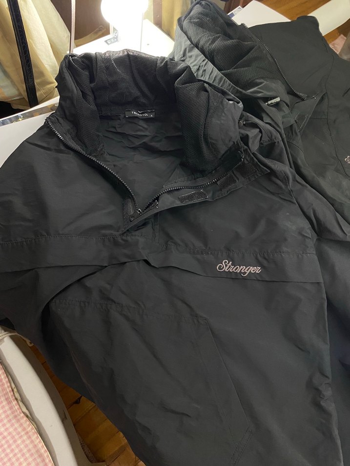 Yüksek yakalı, uzun kollu ve fermuarlı siyah kadın rüzgarlık. Rahat kesimli, yumuşak ve sıcak kumaş astarlı. Outdoor kullanıma uygun streetwear tarzında, önünde 'Strongez' markası bulunur.