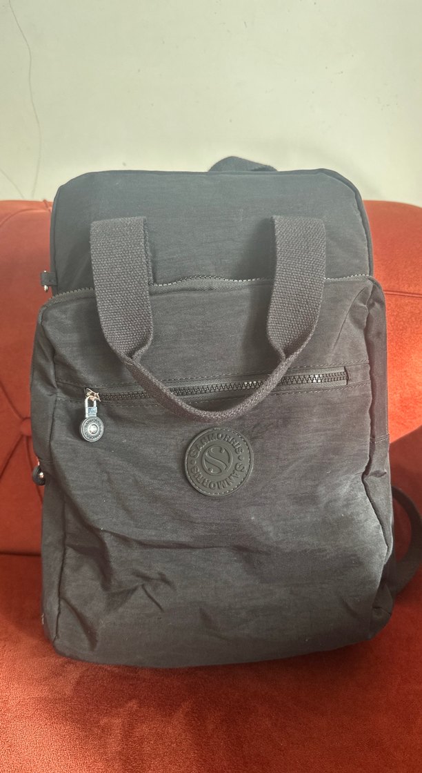 Siyah renkli, fermuarlı ve baskılı desenli kadın sırt çantası, sentetik kumaştan üretilmiştir. Trendy ve minimalist sokak stili için uygundur. Okul , seyahat ve benzeri yarler için uygundur sanmorris marka çok gözlü valiz takma yeri var çok iyi durumda