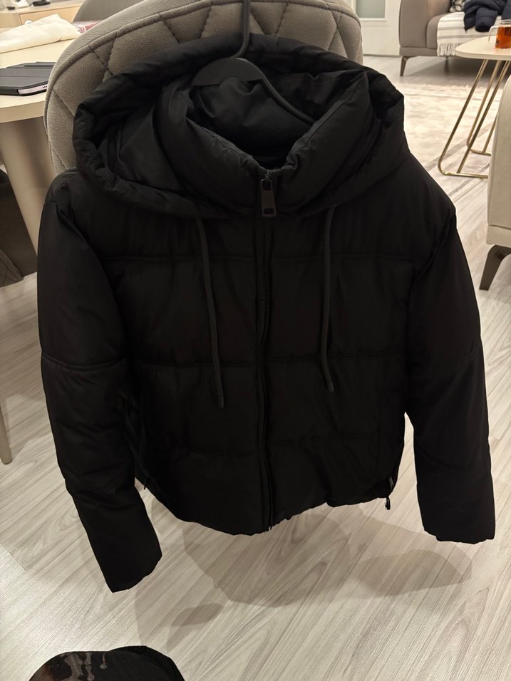 Siyah, fitted kesim kadın kışlık mont, yüksek yakalı ve uzun kolludur. Yumuşak fleece kumaştan üretilmiş, fermuarlı ve günlük kullanıma uygun sokak tarzında rahat bir modeldir. Son fotoğrafta kusuru eklenmiştir.