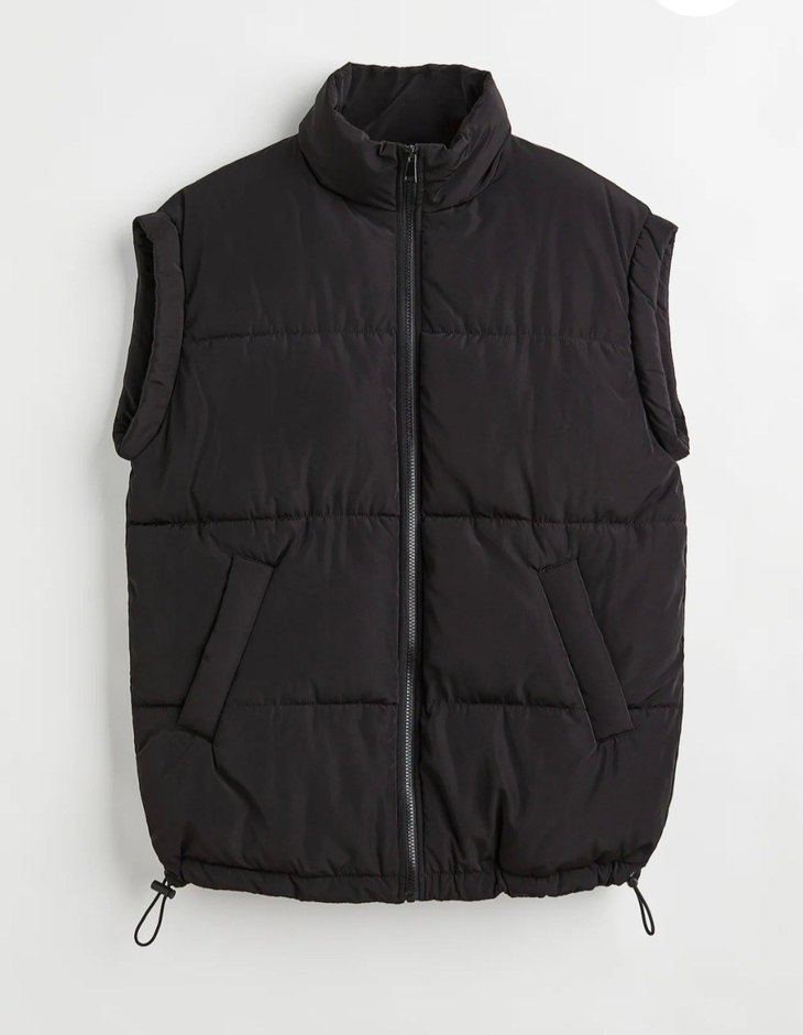 Fermuarlı, yüksek yakalı siyah şişme yelek. Yumuşak fleece kumaştan, Günlük rahat kullanım için uygundur. iki üç kere giyildi kusuru yoktur