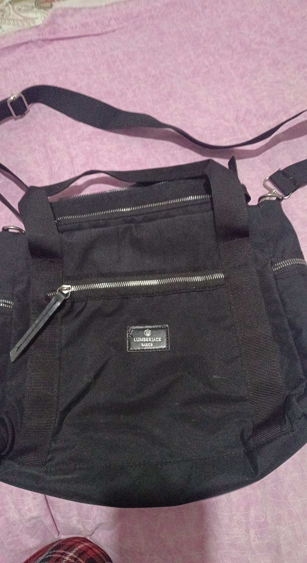 Siyah renkli, fermuarlı ve sentetik kumaştan üretilmiş kadın spor çantası. Günlük kullanım için uygun, goth tarzında ve athleisure etkisi taşıyor. Desensiz ve sade tasarım.