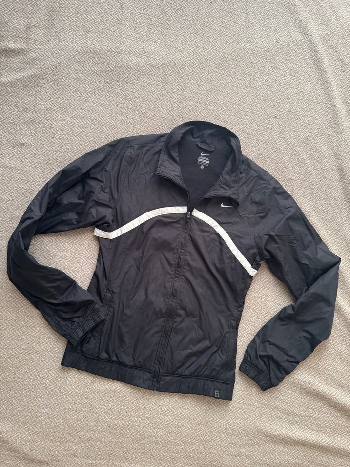 Dar kesim, uzun kollu ve yüksek yakalı kadın spor ceketi. Fermuarlı ve gri şerit detaylı, yumuşak dokulu kumaştan üretilmiştir.