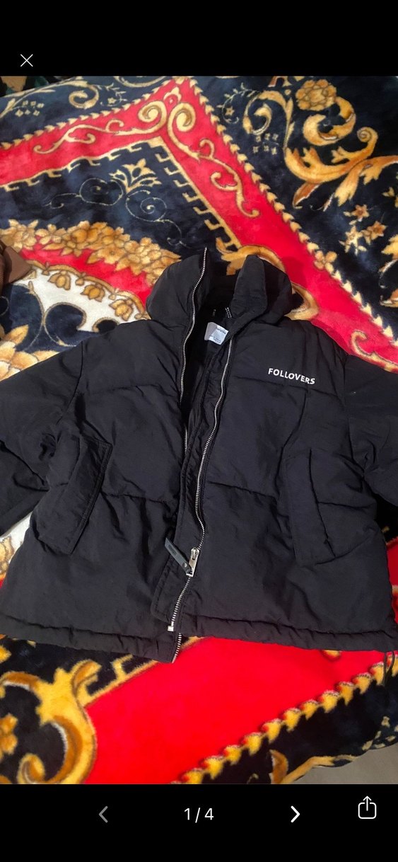Siyah, fermuarlı kadın montu, rahat kesim, uzun kollu ve yakalıdır. Yumuşak kumaştan yapılmış, midi boyda ve desen içermeyen, günlük kullanıma uygun rahat bir tasarıma sahiptir. Göğsünde 'FOLLOVERS' yazısı bulunur.