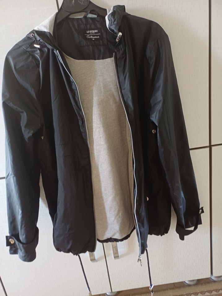 siyah renkte, fermuarlı, bol kesim ve kapüşonlu kadın yagmurluk Uzun kollu ve yumuşak sentetik kumaştan üretilmiştir, günlük kullanım için uygundur.