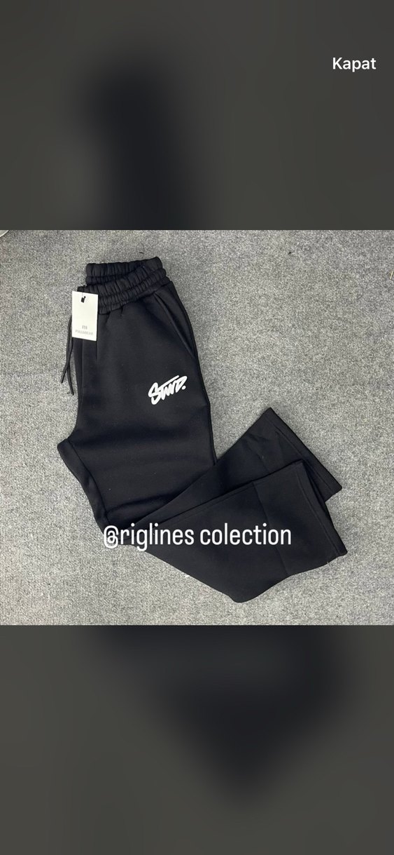 Yumuşak kumaştan, bol kesim siyah fermuarlı kadın sweatpant. Elastik bel ve sade tasarım, logo baskılı.