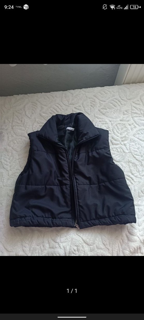 Yumuşak ve sıcak kumaştan, fermuarlı ve yüksek yakalı siyah kolsuz yelek. İnce kesim ve normal boyda, günlük kullanıma uygun.