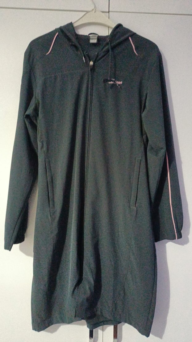 Siyah renkli, uzun kesim ve fermuarlı spor ceketi, kapişonlu ve uzun kolludur. Yumuşak ve sıcak dokusu günlük rahat kullanıma uygundur.