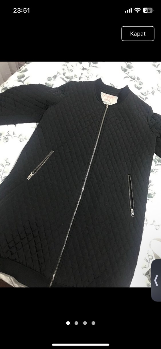 Siyah Fermuarlı Kapitone Mont