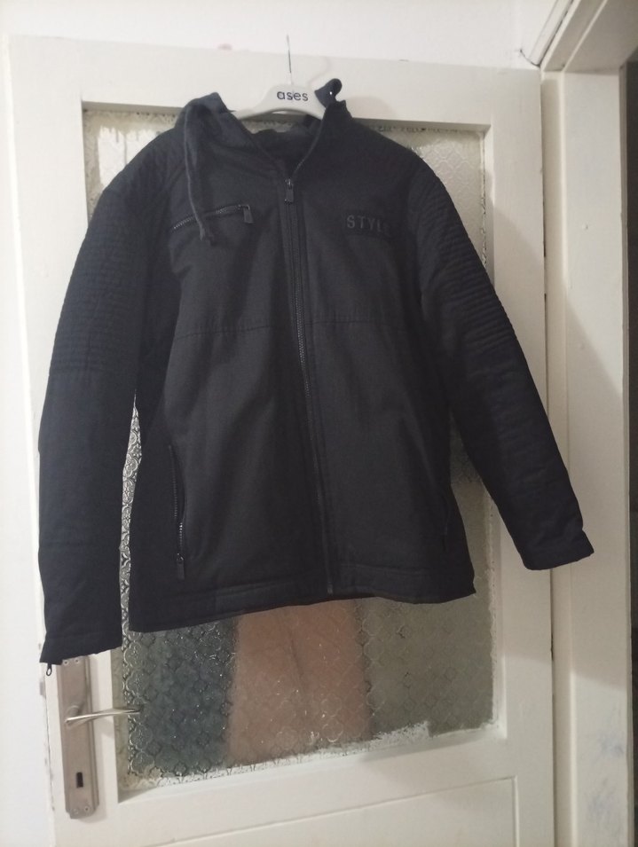 Siyah Fermuarlı Kapüşonlu Erkek Ceket