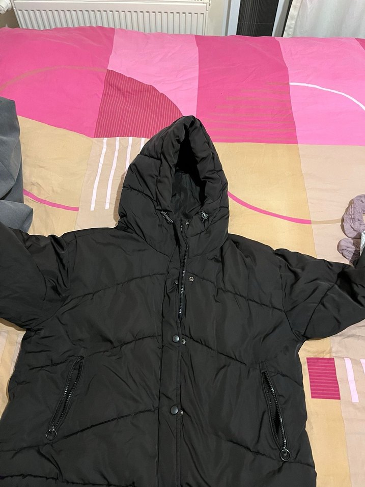 Siyah renkli, kapüşonlu ve fermuarlı kadın kışlık mont. Yüksek yakalı, uzun kollu ve midi boyda, sıcak tutan yumuşak kumaştan üretilmiştir. Rahat ve şık bir sokak stili parçası. ❄️