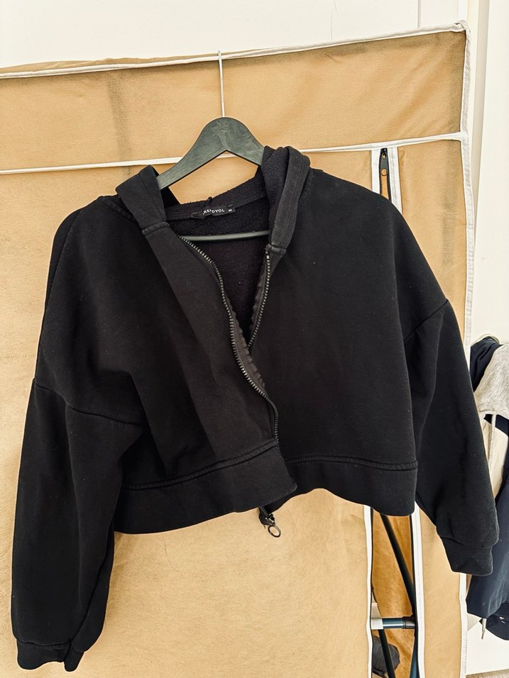 Siyah Fermuarlı Kapüşonlu Kadın Sweatshirt