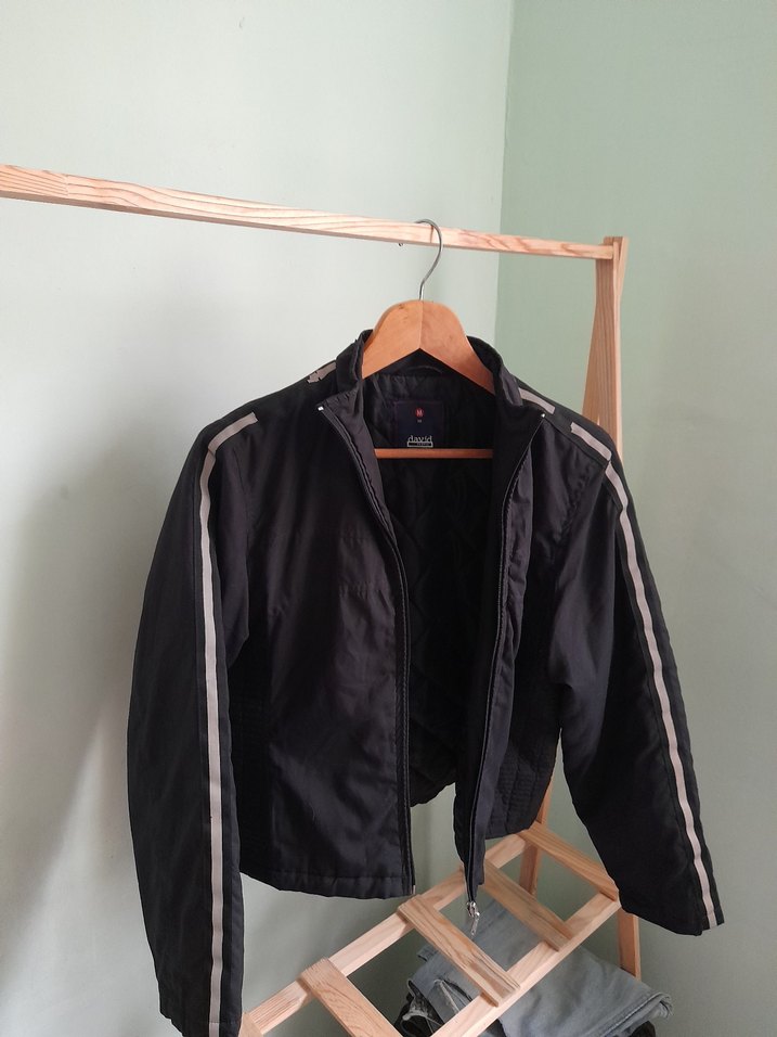 Siyah renkli, fermuarlı, uzun kollu, kısa kesim ceket. Notlu yaka ve karanlikta parlayan fosforlu sportif şerit detaylarıyla dış mekan kullanımı için uygundur. fosforlu seritlerinde omuz kisminda soyulma mevcut fotografla gosterilmistir.