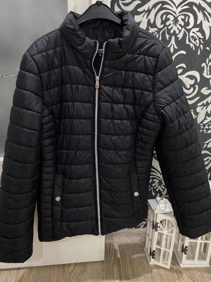 Yumuşak sentetik kumaştan üretilmiş, siyah kısa kadın kışlık mont. Yüksek yakalı, uzun kollu ve fermuarlı, rahat sokak stiline uygun.