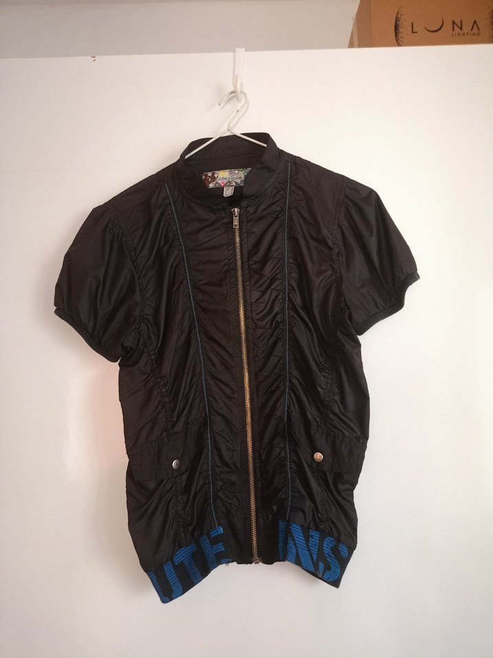 Siyah, sentetik kumaştan, kısa kollu, fermuarlı ve yüksek yakalı bol kesim ceket. Günlük kullanıma uygun rahat bir parça. JNA detayı mevcuttur.