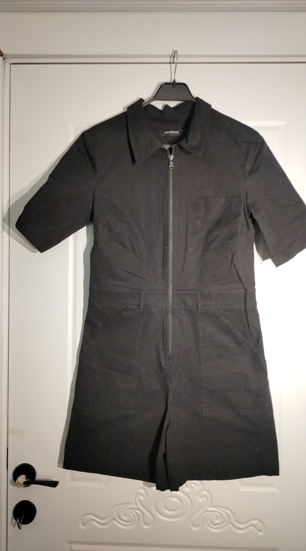 Siyah Fermuarlı Kısa Kollu Tulum