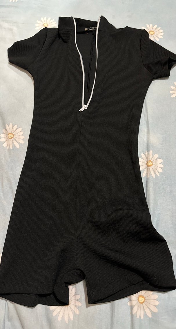 Siyah Fermuarlı Kısa Tulum