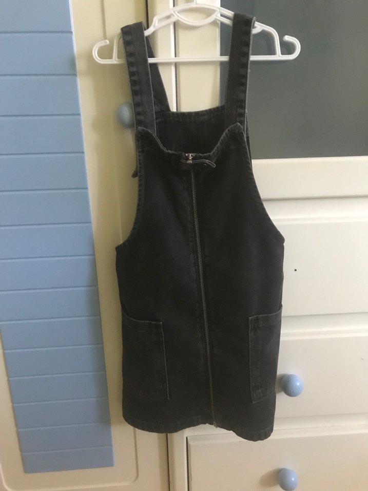 Siyah Fermuarlı Kız çocuk Denim Salopet