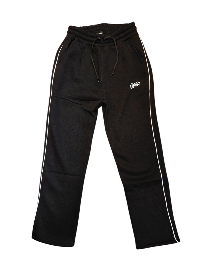 Yumuşak ve sıcak kumaştan yapılmış, fermuarlı cepleri ve beyaz yan şeritleri bulunan siyah, normal kesim kadın eşofman altı. Spor ve gündelik kullanıma uygundur.