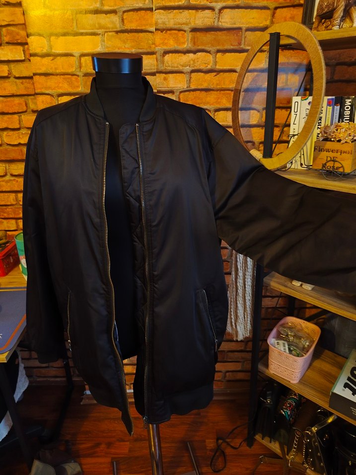 Siyah Fermuarlı Midi Kadın Ceket