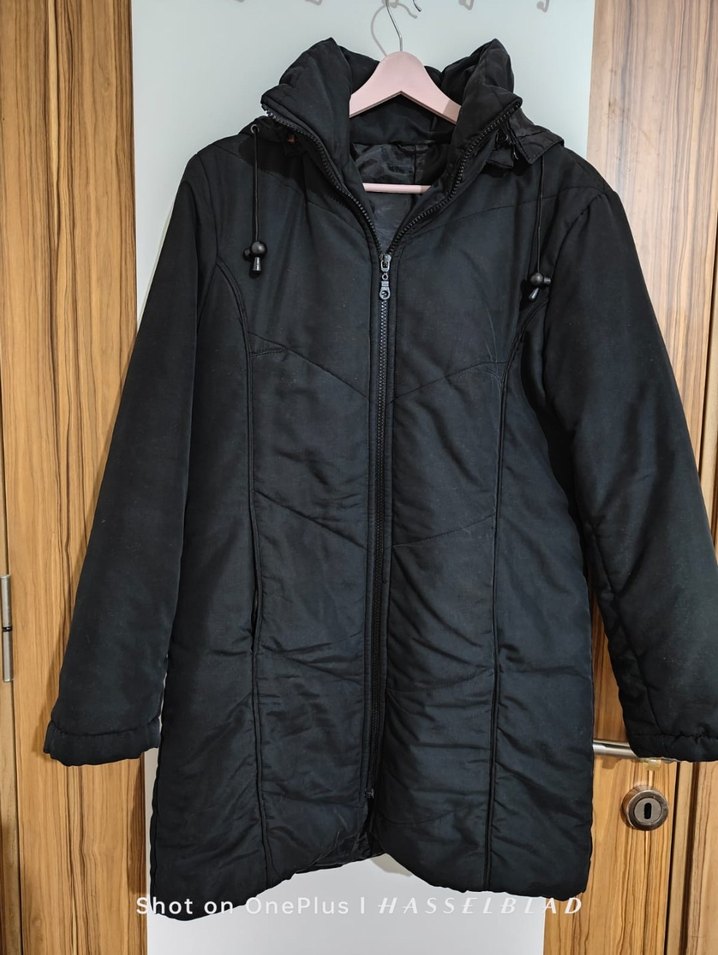 Siyah Fermuarlı Midi Kadın Kışlık Mont