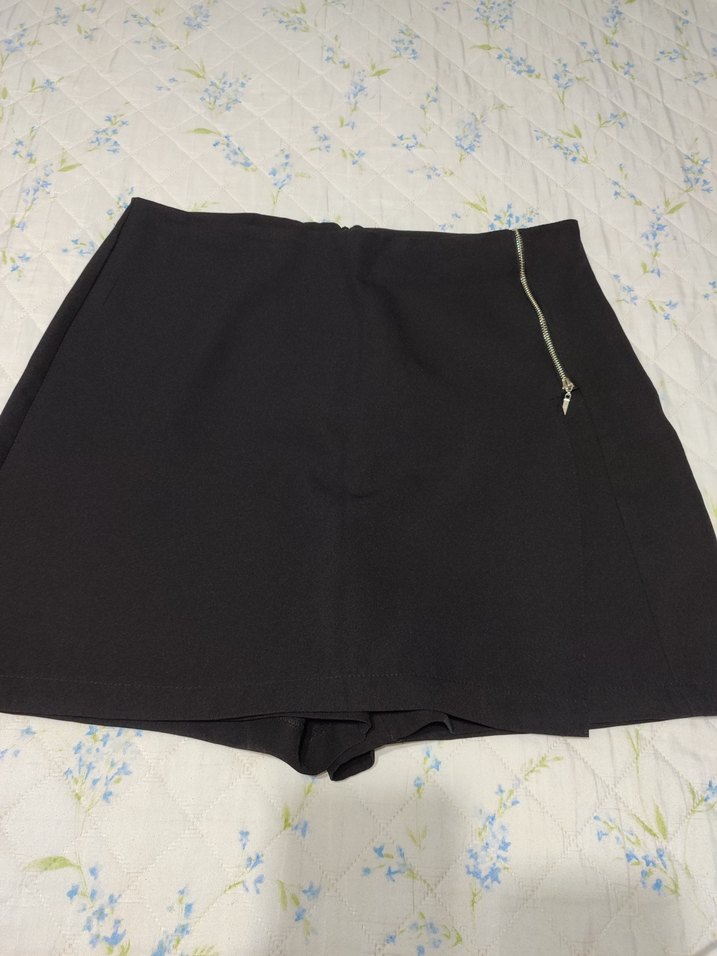 Siyah Fermuarlı Mini Etek şort