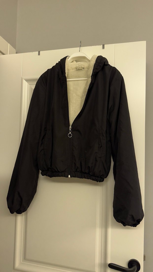 Siyah, fermuarlı ve yüksek yakalı bu kadın montu, uzun kollu ve mini boydadır. Yumuşak ve sıcak iç astara sahiptir.