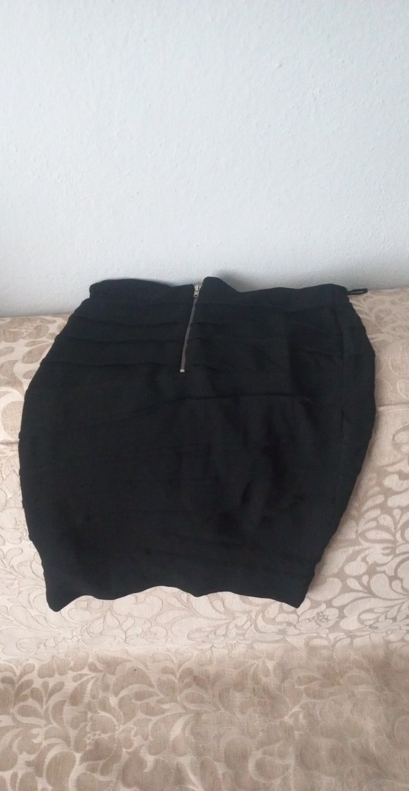 Siyah keten kumaştan, fermuarlı ve vücuda oturan mini etek. Minimalist ve gotik tarzda, günlük kullanıma uygun.