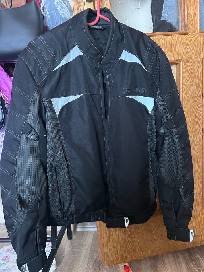 Fermuarlı cepleri, sivri yaka ve uzun kollu, siyah renkli, sentetik kumaştan yapılmış dar kesim biker erkek ceketi. Motor veya bisiklet kullaniminda ideal.