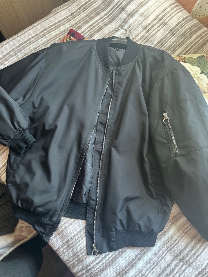 Siyah fermuarlı, oversize kesim ve uzun kollu, normal midi boyda, sentetik dokulu kadın ceket. Sokak stiline uygun rahat tasarım.